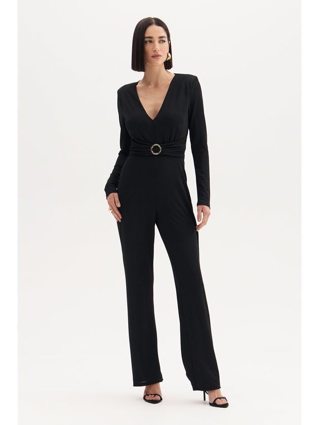 Confeccionado em uma luxuosa combinação de 96% poliéster e 4% elastano, este macacão se ajusta de forma impecável ao corpo, oferecendo conforto ao longo de todo o dia.